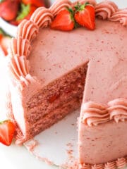 is full of strawberry flavor! Moist strawberry cake layers are paired with a strawberry cream cheese frosting for the ultimate strawberry cake!